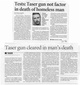 Taser Cops Cleared Hollywood In-custody Death 2002(2) Tests: Taser gun not factor in death ofhomeless man By VICKY AGNEW STAFF WRITER The Broward County Medical Examiner's Office said a shot from a Taser gun did not contribute to the death of a homeless man who died in late January after …